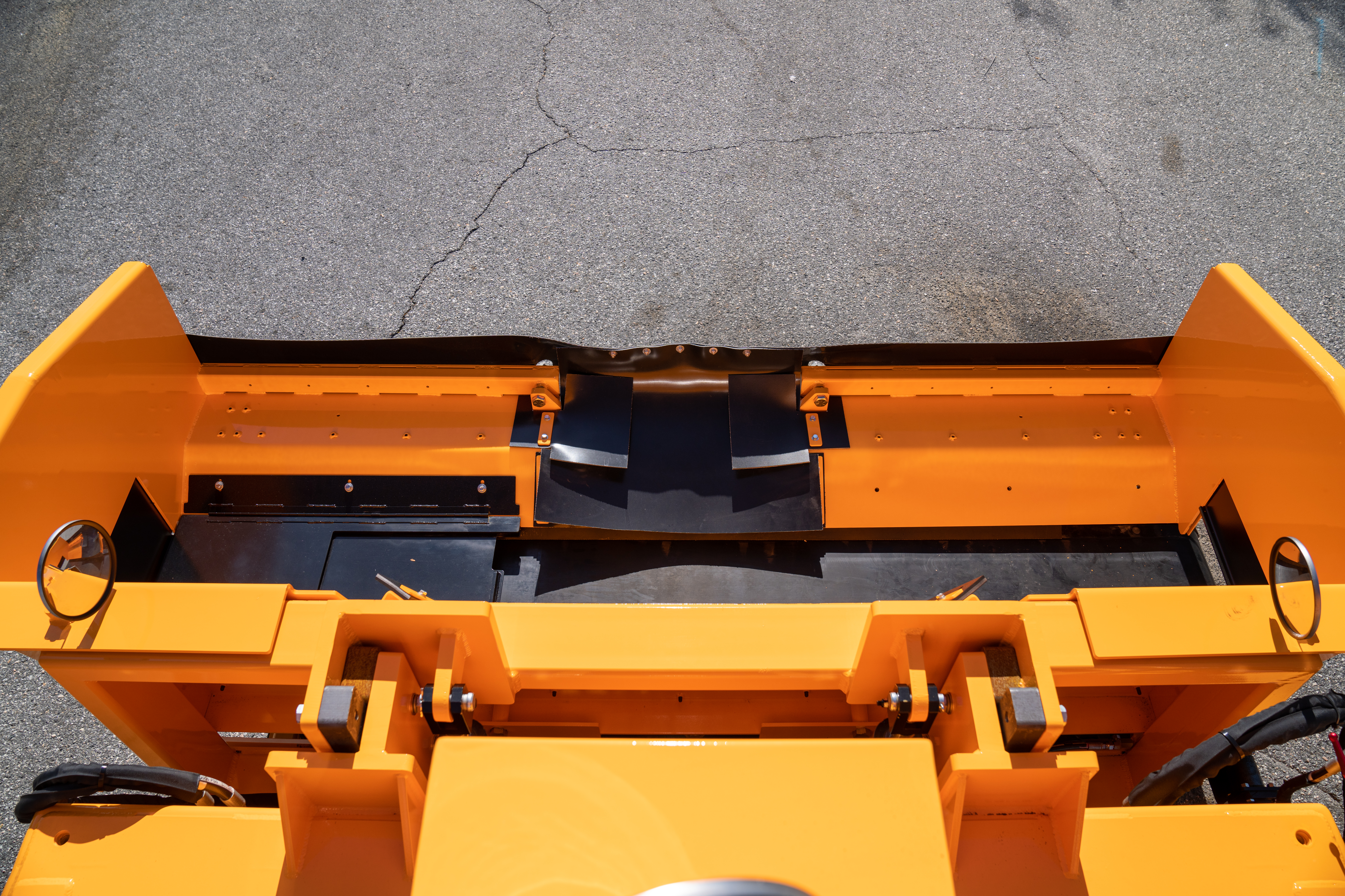 The 4130B road widener is a versatile machine that meets your road widening needs. The narrow width design allows for shipping without a permit while shiftable conveyor and foldable hopper wings allow precise placement of material to either side of the machine. Operator console easily shifts from side-to-side and allows a clear view into the front hopper and of the material flow to the strike-off. A vertical lifting hopper improves trailer loading angle. Extendable push rollers insure a variety of trucks can be used to feed the hopper.
